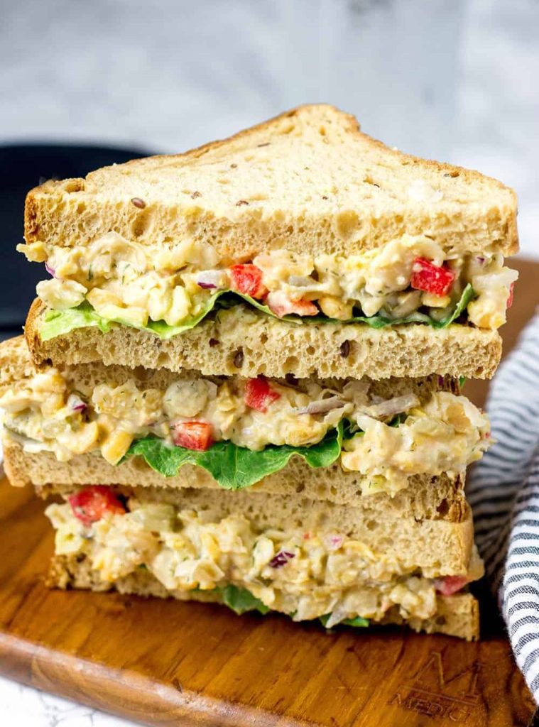 Mashed chickpeas, mixed with a creamy dressing and crunchy vegetables, create a savory sandwich filling. It’s satisfying and easy to prepare without cooking. Ideal for a quick lunch that still feels hearty.