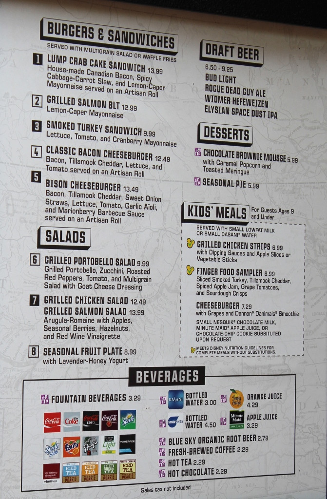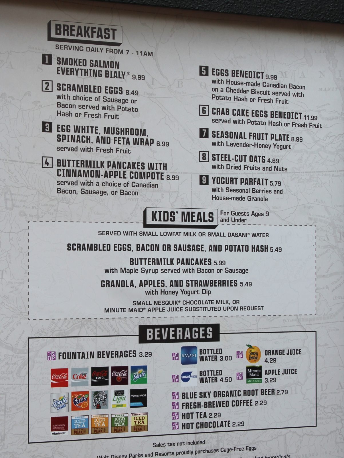 Geyser Point also serves breakfast from 7 to 11 am every day. I liked that the menus at Geyser Point feature regional specialties of the Northwest to tie into the theming at Wilderness Lodge.